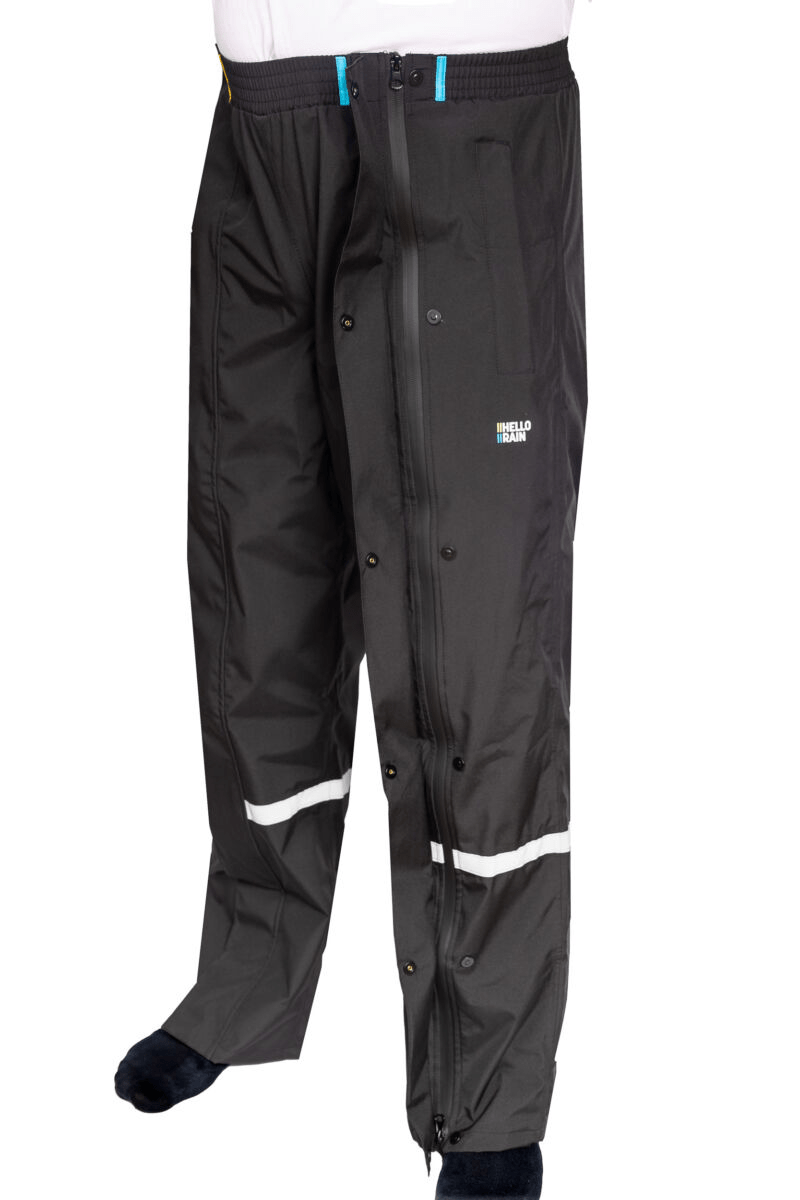 Le pantalon de pluie a pour but de tenir les vêtements au sec. Et il remplit son rôle, jusqu’au moment de le retirer… Combien de fois vous est-il arrivé de finir les jambes trempées en enlevant votre pantalon de pluie ? Les fondateurs de Hello Rain en avaient assez de ce problème. En quête de mieux, ils vous proposent désormais un pantalon de pluie pratique, équipé de tirettes latérales. Fini de retirer vos chaussures ou d’être trempé·e par les gouttes de votre protection de pluie. Même vos poches sont protégées, tout en restant accessibles !