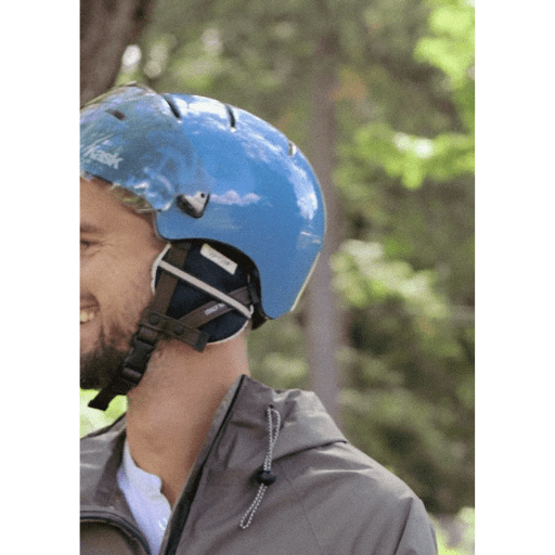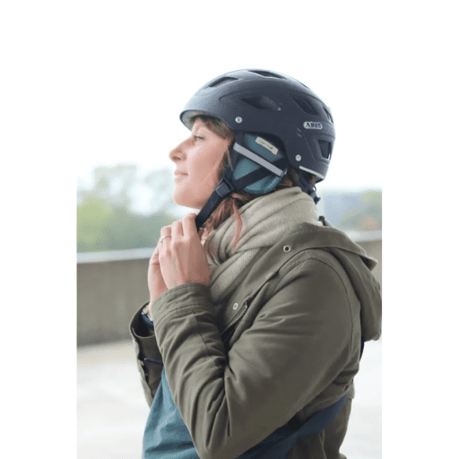 - Sangles du casque se glissent dans la bande réfléchissante.