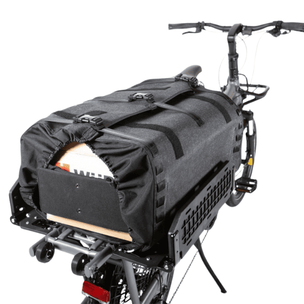 Le D.R.S Bag est le nouveau sac conçu pour le Yuba Fastrack, compatible avec le Dual Rack System. Inspiré du 2-Go Bag du Spicy Curry, il se fixe solidement avec des vis et des élastiques, offrant une protection optimale pour vos objets longs ou volumineux. Fabriqué en nylon 1000D, imperméable et résistant à l’abrasion, il propose trois configurations modulables : en position basse (sideloaders) avec ou sans rabats, ou en position haute (carry-on) pour protéger les chargements sur le dessus du rack. Idéal pour transporter vos affaires en toute sécurité, le D.R.S Bag est l’accessoire indispensable pour votre vélo cargo Fastrack.
