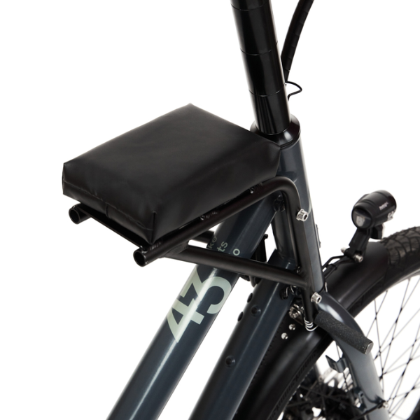 Selle enfant sur-mesure : – Fixée sur le cadre derrière le guidon.