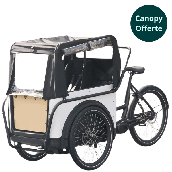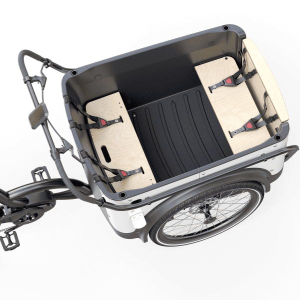 Doté de deux bancs avec ceintures, il peut transporter jusqu’à quatre enfants en toute sécurité. Sa transmission Shimano Nexus 7 permet de changer de vitesse à l’arrêt, facilitant les redémarrages en milieu urbain. Une solution pratique et rassurante pour les familles.