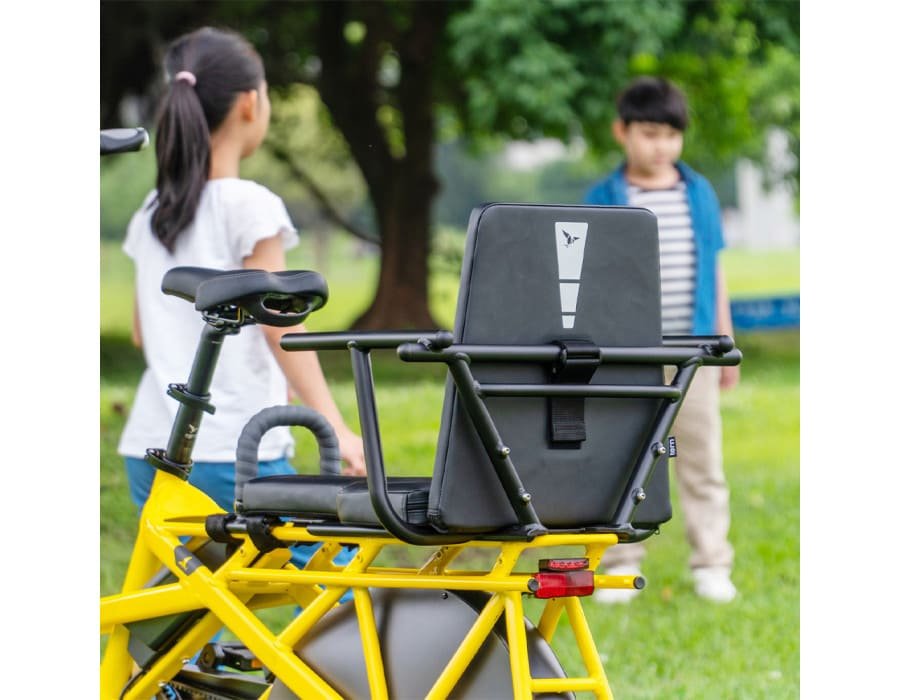 - Le siège passager Tern Captain's Chair se visse sur le porte-bagages arrière.
